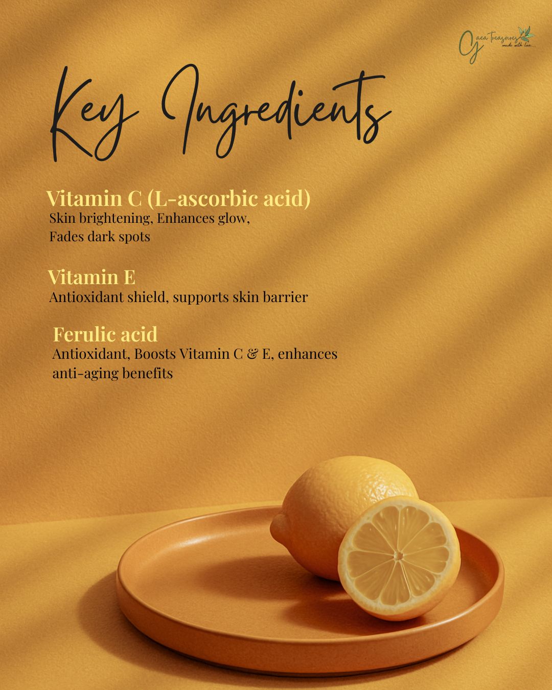 Gaeatreasures proudly presents its Vitamin C Serum, a skincare powerhouse packed with antioxidants, aloe vera extracts, and free from harmful additives, this serum is your ticket to achieving a brighter, healthier skin tone.