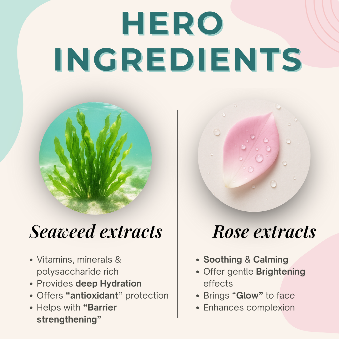 ➡ Formulated with the goodness of Seaweed, Rose, Shea butter, Safflower oil, Watermelon seed oil, Sweet Almond oil, Vitamin E, Glycerine.